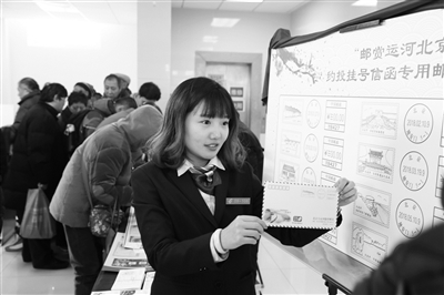 27日,“邮赏我的运河,爱上我的北京”——2018“邮赏运河北京”系列邮资机戳启动仪式在地安门邮政支局举行。今年推出的15枚图案选用了河道、水源(泉、湖泊)、闸、桥、仓库、古建筑等多种类的运河遗迹,为运河集邮爱好者提供新的集邮素材。本报记者 赵思远 摄影报道