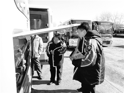 日前,16部“小黄”公交车,在北京公交保修一厂内完成新车首保工作。6米长的灵巧车身、黄色靓丽的外观以及全新的气电混合动力系统,让新型“小黄”公交车不仅有着不错的“颜值”,还拥有了一颗环保“心”。本报记者 边磊 通讯员 孙宏彬 摄影报道