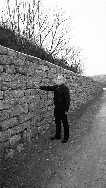 张印如说,除了这些低矮的护坝,还有很多山坡路旁也垒砌了两米多高的挡墙。在庄户峪进村的路上,记者就见到了这样用石头砌成的挡墙。“原来这里就是一段土坡,下雨的时候,常有石头和泥土从山坡上冲下来,阻碍交通。水土流失和交通隐患都让村民十分担忧。”张印如说,经过几次考察,他决定在这里修建挡墙,避免安全隐患,但由于位置正处转弯处,他又担心交通视角问题,于是一点点测量计算。虽然没有做过泥瓦匠,不懂这些设计问题,但经过张印如设计规划出的挡墙,不但起到了保持水土的作用,也不影响交通视线。