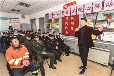 为做好户外劳动者送温暖工作,在全社会营造关爱劳动者、尊重劳动者的良好氛围,昨天,北京市总工会在西城区白纸坊街道建功南里暖心驿站(社区服务站)举行“献歌劳动者 温暖在驿站”慰问活动,为来自保安、快递、环卫等行业的社区户外劳动者赠送“新春福包”,并邀请北京新春音乐会导演组、部分演员为户外劳动者献歌、赠送人民大会堂北京新春音乐会门票。