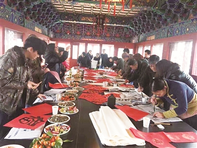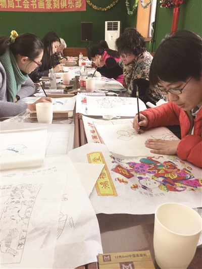 不光是自己的职工活动丰富,整个北京市文物局系统,都知道石刻馆工会有一个书画俱乐部,这个俱乐部不光本馆职工是会员,全系统职工都可以来参加书法、篆刻活动。李仓均介绍,为了丰富俱乐部活动内容,吸引更多会员参加,工会委员会将文创部设计人员改为俱乐部牵头人,结合本馆特色,适时开展“五福石”拓片、“石头上作画——会说话的石头”、“画年画”“画脸谱”“传统风筝、灯笼制作”等活动。