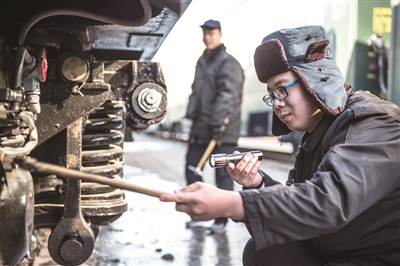“春运开始了,我们把握着列车运行的安全密码,责任重大,每一个细节都决定着旅客们回家过年的归途,容不得半点疏忽!”库检车间董江博副主任在寒风中依然坚定的面庞满是使命感。