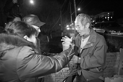 昨晚9时,记者跟随石景山救助管理站的工作人员到辖区巡查,为流浪乞讨人员送去食物、衣服、棉被等生活必需品。据了解,自2017年11月起开展“寒冬送温暖”专项行动以来,区救助管理站及时购买食物、棉被、棉衣、棉鞋等御寒物资,并牵头公安、城管组织救助巡视队,对繁华地区、主要街道、桥梁涵洞等进行巡查,对露宿街头的流浪乞讨人员,及时劝导他们去救助站接受救助,让流浪乞讨人员温暖过冬。