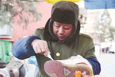 寒冷的冬天,每天早上7点半到晚上5点半,都有一位身穿绿色军大衣的人为居民们配钥匙、修鞋,他就是修鞋匠刘家奇。一天10个小时,20多位顾客,一双没有戴手套的双手已经冻得干裂、红透,但是他为居民们服务从未缺席过。