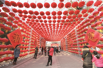 “过年就是红红火火,热热闹闹,人们来到庙会,高挂着的大红灯笼、随风鸣响的风车、欢声笑语的人群,这就有了过年的氛围,感受喜庆与时尚,本身就是年味儿的代表。”周海峰说。