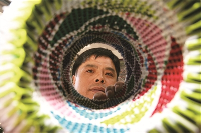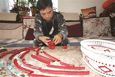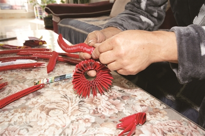 一开始,刘建军还从网上购买了专门制作三角折纸的专用纸。后来,他在制作过程中发现,每次在网上购买的专用折纸颜色单一,如果要制作一件颜色鲜艳的手工艺品,需要几千个三角折纸单件,就需要购买多种颜色的专用折纸,这样一来制作成本就会很高。这也让刘建军很苦恼。