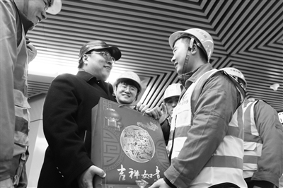 11日,北京地铁运营公司通号分公司总经理楚柏青来到惠新西街南口地铁站,为二十名仍坚守在地铁五号线视频改造工程一线、中铁四局电气化公司北京分公司的职工,送去了充电宝、皮手套、春联、福字等组成的拜年大礼包,并询问了工程的进度和职工的工作生活状况。