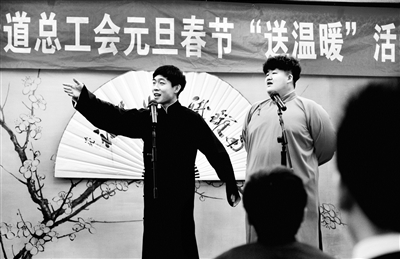 “你敢报菜名?这现场可有厨师长!”相声演员一句话,台下的厨师“哄”地笑出声来。近日,东城区交道口街道总工会为一线职工送温暖,来到和敬府宾馆,为节日期间坚守岗位的职工送来相声专场演出,让他们快乐过大年。
