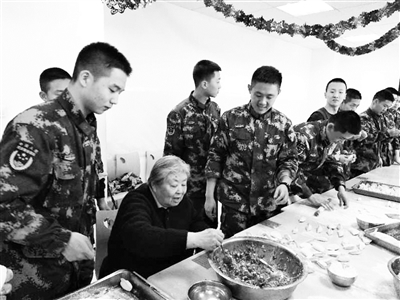 当天在地坛中队,老人和中队官兵共同包饺子、看春晚,度过一个团圆、幸福的新春佳节。“十分感谢中队多年来的关心与照料,让我感到无比的温暖。”李虹说。