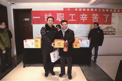 走访慰问中,区领导分别向奋战在一线岗位的职工和政法干警表达了感谢,感谢他们在丰台区城市发展中做出的贡献,同时代表区委、区政府向他们送上了节日祝福并送上节日慰问品。