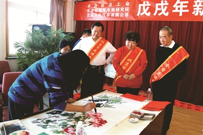 “火红的春联、吉祥的‘福’字,飘着墨香!”2月2日上午,来自区老年书画研究会的书画家们在三兴汽车有限公司现场泼墨,为劳模写春联送祝福,由此拉开了丰台区总工会两节慰问劳模的序幕。