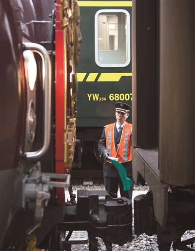 穿着整齐的制服,刘钰峰对着酒精检测仪吹气,践行他对安全的承诺。随着最后一位旅客登上这列车,毛泽东号也在信号指示下缓缓出发。