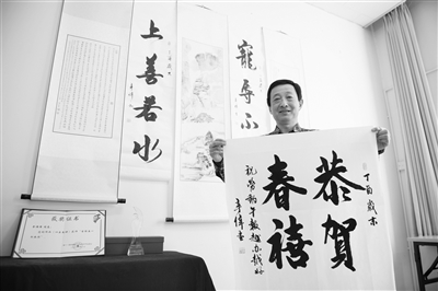 近年来,辛伟伟除了给学校同事写书法、绘画,还参加了东城区总工会的活动,多次为劳模和困难职工家庭写春联,把祝福送到一线职工家里。