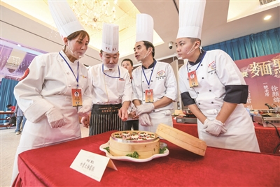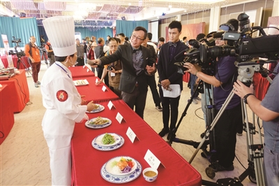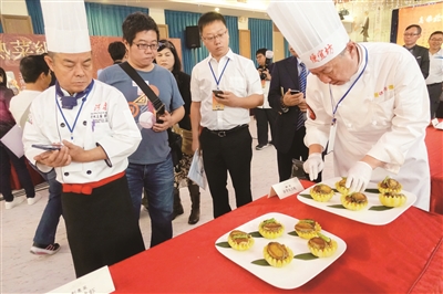 便宜坊的张娜、华天的刘吉桐来到台湾选手台前,询问交流“如意太极松糕”的做法。台湾厨师也拿出手机,把北京菜品逐个拍下来。“台湾菜清淡,注重养生,善于创新,他们的专业性和职业精神都值得我们学习。”刘吉桐说。