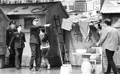 本市首个直接反映城管执法工作的原创话剧《不辱使命》,近日在石景山区首钢体育大厦剧场上演。话剧根据北京市“疏解整治促提升”专项行动中石景山区城管执法监察局的真实事迹创作而成,从石景山区城管执法队员的视角,讲述了一个拆除违法建设大杂院时发生的形形色色的故事。舞台上,跌宕起伏的故事情节加上演员们酣畅淋漓的舞台表现,引得现场掌声不断。本报记者 陈艺 摄影报道