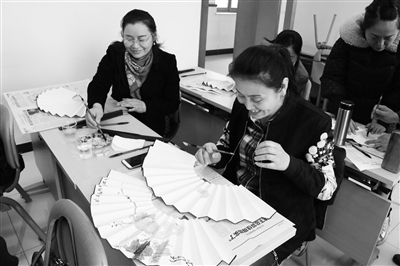 7日,朝阳区40家企业的80余名女职工参与区高新技术产业工会组织的女职工传统文化体验活动。京剧脸谱传承师屈金山为女职工讲授了中国传统文化与工会工作的融合。随后,女职工分别在5位非遗传承人的教授下,参与了风筝、折扇等制作体验。本报记者 刘欣欣 摄影报道