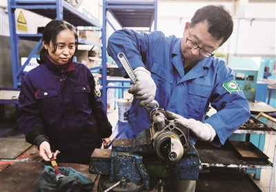 陈志清戴着一副黑边眼镜,从言行相貌看带有文雅的陈志清更像一名学术研究人员,可实际上他在车间修理工岗位上已经工作三十多年了。每天接触的是铁架工作台,成堆油黑的零部件他一天要拿上几十次。凭借着多年的工作经验,大部分送来维修的零部件都难不住他。在他手中,它们又重新焕发了生机。此外,因陈志清儒雅而又不失风趣,车间很多年轻职工都愿意跟他学习。