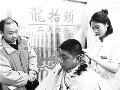 “二月二,龙抬头,大人小孩都剃头。”3月18日,四联美发特意提前2个小时开门,第一场专门为服务百姓、风雨无阻的环卫人员们剃龙头。 作为中华老字号的四联美发,将“剃龙头、剃喜头”这一传统民俗坚持了数十年,为使更多顾客体验这一民俗魅力,四联美发安排男宾部理发师全部停休,补充棉织品面巾等,提前打印500张排队编号,并为顾客准备了小礼品。本报记者 邱勇 摄影报道