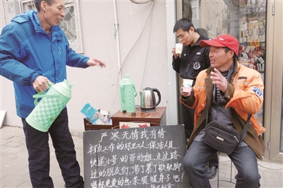 去年入冬以来,北京连续出现寒冷天气,老杨开始为大家提供免费热水,还帮在露天工作的劳动者加热饭菜。若是遇到生活困难的人,老杨会请他吃碗泡面。“店面小格局大,能力有限,温暖无限啊!”老街坊们用精辟的话语表达出小店留在大家心中的印象和对老杨的尊重。