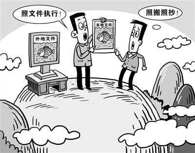 有地方为招商引资,制定印发了考核办法,但不到半个月,就因“先天不足”,在一片质疑声中宣告“寿终正寝”。原来,工作人员为图省事,直接把一主城区街道的考核办法“全盘照搬”过来,只改了时间、抬头、落款单位便发了下去……制定文件时,向别人“取经拿宝”、学习借鉴本也无可厚非,但如奉行前文那种“拿来主义”,盲目照搬照抄、热衷“复制粘贴”,就很有可能会使文件出现不同程度的“排异反应”,轻则“水土不服”,重则“命不长久”。(3月20日《人民日报》)□朱慧卿