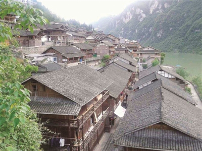 有人说,特色如同女人,美丽是“凸显”出来的。当地人沿乌江上下拉长又拉长,绷直又绷直,硬生生地在绝壁上拉出一道长长的音符,反正乌江这根琴弦很粗很长,任由土家族苗族人民随心所欲演奏弹唱。古镇上的建筑将古镇特色演绎得淋漓尽致,树上悬树、坎上砌坎、顶上盖顶、房上叠房、桥上重桥……窄窄石梯路如同楼梯在屋檐间随意悬挂,由不得你直来直去。偶尔几棵大树也是各自择地,勉强地立在悬崖边,前面是江,身后是崖,容不得再后退半步的了。青石板小街,从上往下看很窄,走起来还是好宽。土家楼院,连体商铺,支撑着古镇的前世今生,充实着,滋润着,风光着,挺有个性地凸现在我们的面前。