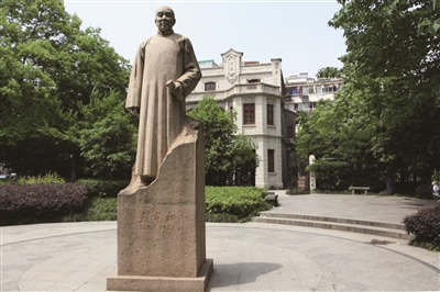 离开纪念馆前,我再次瞻仰了矗立在楼前广场上的穿着长衫的马寅初先生立姿塑像,先生那朴实、豁达、坚定、自信的形象,在绚丽的晚霞中,显得更加英气勃勃,更加光彩夺目。