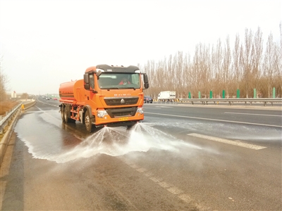 3月26日0时至28日24时,北京市启动空气重污染橙色预警。针对本市此次空气重污染,自3月26日清晨开始,首发养护公司各养护中心针对所管养的860余公里的高速(快速)公路开展多层次道路养护工作。截至目前,首发养护公司共计出动各类保障人员3320人次,道路清扫降尘车辆568台次,清扫里程约5836余公里,降尘里程约4000公里,用水2600吨。