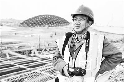 在拍摄新机场的建设过程中,赵海川在地下2层拍过,也多次爬上过50米高的作业面拍摄建设者。“走近建设者,了解他们的喜怒哀乐,我感到劳动光荣,劳动伟大。”几乎每一天,赵海川在忙完手中工作后,都要举起镜头前往拍摄。