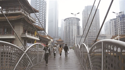 继轻轨穿楼而过、波浪形公路、全国最复杂立交桥、全国最深地铁站后,重庆又现高楼城市休闲广场。重庆临江门的魁星楼,一楼是广场,坐电梯上27楼楼顶还是休闲广场,你永远不知道自己站在哪条地平线上。让人感叹城市的立体与魔幻。
