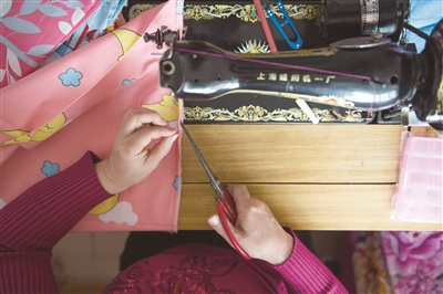 今年47岁的王宏芳在到公交集团上班之前,一直从事服 装制作工作,手工活在姐妹中是出了名的细致、工整。但是常年低头工作让她的颈椎落了毛病。转行后,她便把手工活扔到了一边,用她自己的话说,“干了那么多年,腻了,后来我连碰都不愿意碰了,衣服的拉锁坏了,我宁愿去买一件新的也不会动手去修它。”王宏芳本以为自己再也不会重拾针线活儿了,不料,在接触拼布之后,她心中对缝艺的热爱重新被激发了出来。为此,她还自费报了一个拼布培训班,从头开始学习这门手艺。