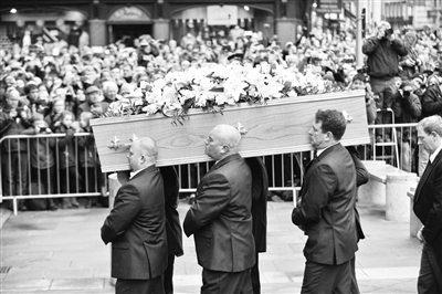 当天,教堂外聚集了大量自发前来悼念的民众。尽管无缘进入教堂参加私人葬礼,他们还是早早聚集在道路两旁。在看到灵柩的那一刻,人们不约而同地鼓起掌来,为这位身患重疾仍谱写精彩人生的科学家喝彩。