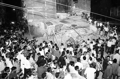 据印度媒体4月1日报道,印度中央邦印多尔市3月31日晚发生一起旅馆倒塌事故,造成至少9人死亡。图为3月31日,救援人员在印度中央邦印多尔市旅馆倒塌事故现场工作。