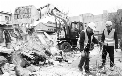 在珠市口西大街原老城一锅的位置,一排违建房屋在吊车轰鸣声中被拆除。大栅栏城管科副科长王俊礼介绍,按照西城区相关任务清单,大栅栏街道今年疏解整治共涉及24处、占地面积2491.4平方米的临建违建。结合大栅栏街区整理计划,街道将进一步推进“留白增绿”工作,在原位置建设大栅栏地区最大的街心花园,占地面积约1公顷。从老城一锅的地方一直往西延伸至地铁站,涵盖了原来的京剧发祥地,整个这一片都将建成一个新的街心花园。