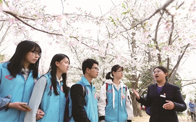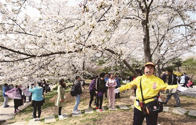 据了解,在玉渊潭公园第30届樱花文化季的双休日和清明小长假期间,每天有60名首都公共文明引导员在园内樱花集中盛开的区域,进行文明游园、文明赏花的宣传引导,以及交通咨询、指路答疑,疏解人流等志愿服务,维护着公园美丽的赏樱景观和游园秩序。