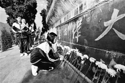 清明节前夕,各地纷纷举行祭奠活动缅怀先烈。图为湖北省保康县城关镇小学学生向革命先烈献花。
