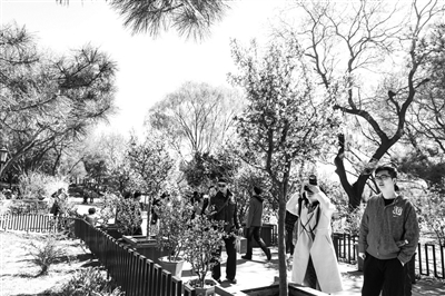 4月7日,京城艳阳高照,气温开始回升,各大公园也迎来游客高峰。陶然亭公园内的“绚丽”海棠、“王族”海棠逐步进入盛花期,与园内连翘、榆叶梅、碧桃等春季开花灌木争奇斗艳,形成色彩斑斓、春意盎然的植物景观,让游客流连忘返。