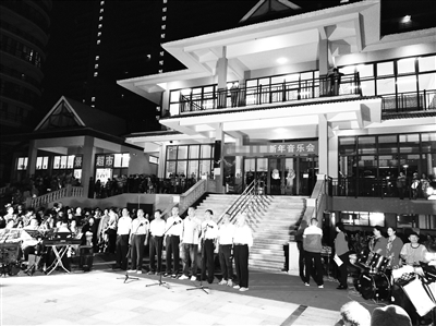 平时没事他和老伴就在小区里呆着,早上买菜、锻炼,回家做饭,午休一小时,下午泡温泉或游泳,晚上去小区广场遛弯,这也是一天中遇到人最多的时候。跳各种舞的、模特队练习的、唱卡拉OK的,大家各占一块区域,玩得尽兴。春节里物业组织了一场室外联欢会,为齐先生冲淡了不少思乡之苦。