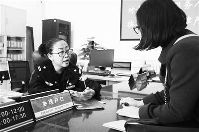 白雪今年42岁,她性格开朗,喜爱说笑,总会让前来办事的居民感到十分亲近。自2007年从部队转业以来,白雪一直在霍营派出所负责户籍窗口接待工作,工作内容包括户口审批、审核上报及市外迁入、市外投靠等方面。