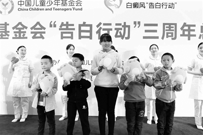 “告白行动”于2015年4月启动实施,通过向社会募集资金,对儿童和青少年白癜风患者进行疾病救助的同时展开心理援助。中国儿童少年基金会项目负责人蔡晶芝表示:“项目旨在帮助广大白癜风患儿改善就医条件,得到及时有效救治,让每个患儿早日摆脱疾病困扰,健康快乐成长。三年来,项目共覆盖全国20余省、资助近600名青少年白癜风患者,取得良好社会效益。”活动中,来自公益和医疗领域的专家聚焦白癜风患儿的健康状况和就医困境、围绕社会各界所承担的责任,以及如何更好对白癜风患者开展专业救治、专项资助、心理援助等展开讨论。周世杰 摄