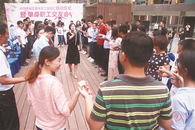 由于工作繁忙,丰台区卢沟桥乡辖区许多企事业单位的职工很少有结交异性朋友的机会,一些职工不知不觉步入了大龄青年的行列。为解决大龄未婚职工的婚姻问题,2017年以来,该地区总工会就把为单身职工提供免费婚介服务作为一项重要工作,通过举办大型相亲联谊会、小型交友会、单独牵线搭桥等多种形式,特别是以单身职工“文化沙龙联谊活动”为龙头为单身职工搭建交友婚介平台,提供大家相互认识和了解的机会,让他们结交志趣相投的朋友,拓展生活空间。同时,通过工会搭台、企业参与、职工乐享的常态化、多样式的活动,营造浓郁的地域文化氛围,让更多的单身职工在轻松、浪漫、温馨中邂逅属于自己的幸福爱情。