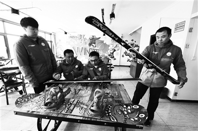 郭军华是滑雪队成立初期唯一的女队员,由于酷爱滑雪人称“雪疯子”,由于滑雪场就开在自家门口的缘分,就这样把她和滑雪紧紧牵在了一起。现在的她,正在冬奥小镇张山营全职经营着一家名为“冰雪情”的滑雪主题餐厅,在这个充满滑雪元素的小店里,她还专门用玻璃隔断出一片小天地,里面摆满了她私人收藏的滑雪器材和装备,甚至还有一台打磨雪板的工具。这次到吉林参加培训的郭军华就对培训内容之一的雪板维护格外感兴趣。修刃、打蜡,打磨板底……她在教练身边看得仔仔细细,眼睛都不敢多眨,生怕错过哪个细节。她说,回到延庆之后,她准备立刻入手一套修板打蜡的工具,将自己的餐厅变成一个多功能的滑雪爱好者服务驿站。“我希望这里不仅仅是一个餐厅而已,还能成为滑雪爱好者的服务驿站,滑雪之余,聊天交流滑雪经验,还能在店里为雪板做保养,争取未来还能实现更多的功能。”