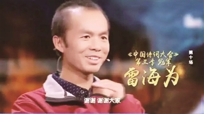 4月4日,《中国诗词大会》第三季总决赛落幕,来自杭州的外卖小哥雷海为获得总冠军。