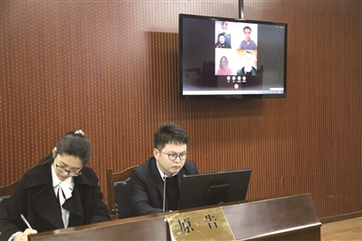 3点15分,李先生也出现在屏幕上。“你把电脑往左挪挪,说话靠近麦克风。”经过一番调试,原告、被告、原告代理人和法官都在屏幕上出现,冯永良宣布“现在开庭。”随着法槌的敲响,视频庭审正式开始。