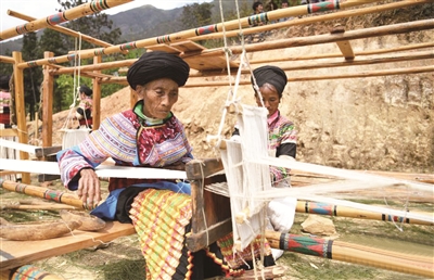 图为正在织麻布的四川凉山德昌县南山傈僳族妇女。随着科技发展,傈僳族祖祖辈辈传承的织布技艺面临着传承问题,当地希望通过展示,让更多的人了解并喜欢纯天然的火草麻布。