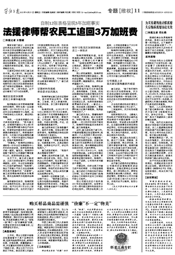 法援律师帮农民工追回3万加班费
