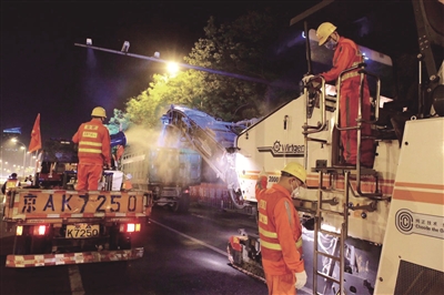 本次道路病害处理涉及三环、四环全环主、辅路。但由于是针对前期摸排的病害路段,所以只会对病害路段局部处理,对路面交通影响不大。周世杰 摄