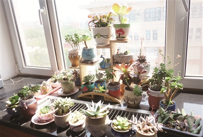 从开始画些简单的花草,到各种卡通形象,虽然绘制的花盆图案只有八成像,但是梁爽却在这个兴趣中感受到无比的快乐。现在,单位中五六个女职工都利用午休时间开始摆弄“多肉”,种植的“多肉”也已经多达百余盆。闲暇之余,大家还会互相交流种植新得。