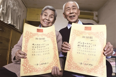 1956年参加工作,1958年结婚。两个人最初都是售票员,刘玉华在5路公交车,钱元隆在10路公交车。后来,钱元隆当上了车队的管理干部,刘玉华则继续坚守在一线。