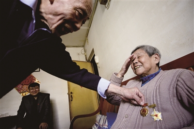 “ 五一”劳动节这天,79岁的刘玉华将放在锦盒里珍藏了三十多年的全国五一劳动奖章和北京市劳动模范奖章佩戴在胸前,这是1981年得到奖章以来,她第一次将它们佩戴在胸前。