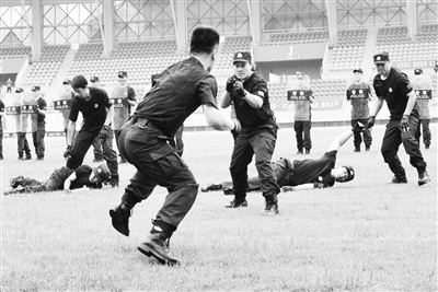 昨天上午,北京市监狱管理局举行首届警体运动会。除了传统的体育比赛项目之外,此次运动会还结合监管改造工作实际,设立了警用装备佩戴、抓捕技能等比赛项目。通过警体竞技,展现了监狱警察的良好风貌。本报记者 孙妍 摄影报道
